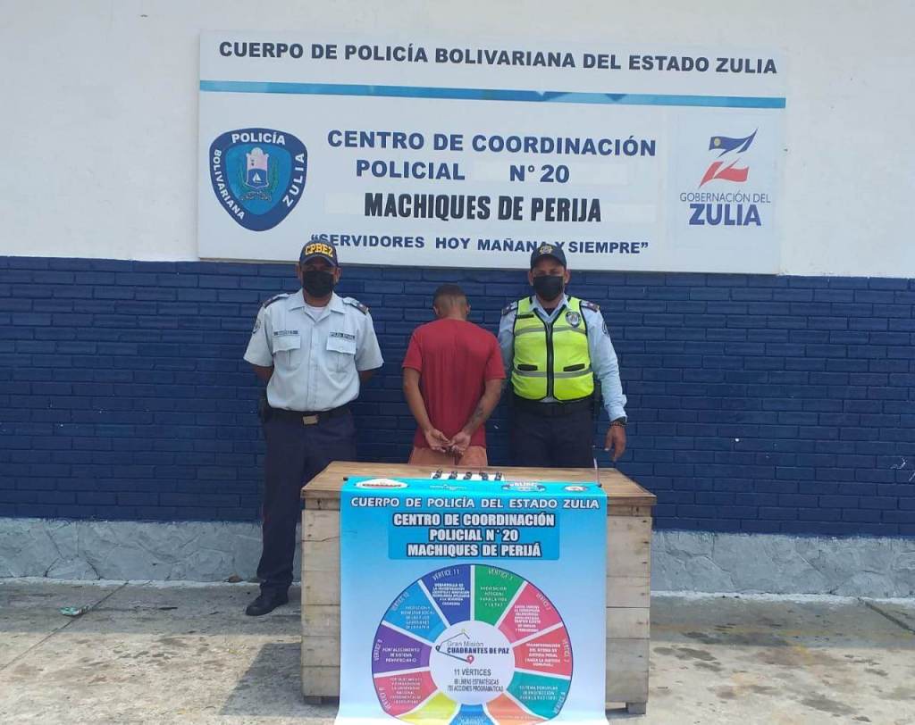 En el sector Los Robles, parroquia Sinamaica, agentes del Centro de Coordinación Policial Municipio Indígena Guajira detuvieron a Yunairo Alexander Chourio Fernández de 38 años de edad, quien movilizaba 201 gramos de presunta marihuana, distribuidos en 167 envoltorios tipo pitillo y una bolsa así como 28 láminas de papel para la fabricación de cigarrillos.