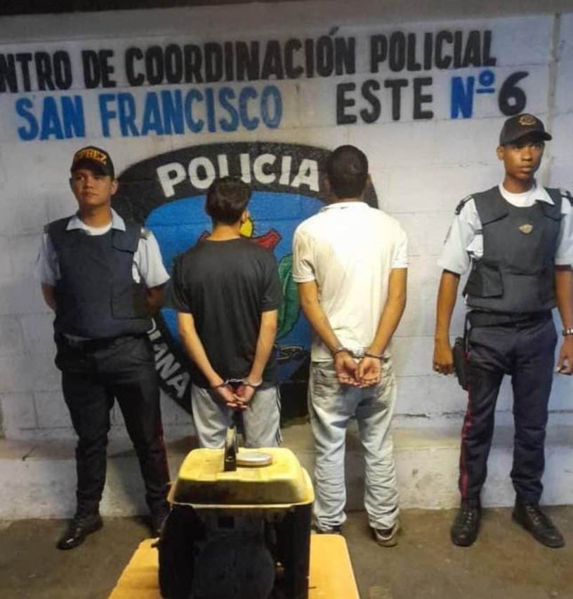 En horas de la madrugada de este viernes, patrulleros del Centro de Coordinación Policial San Francisco Este atendieron el llamado de la comunidad del barrio Luis Aparicio sector Tres, parroquia Domitila Flores, municipio San Francisco, donde dos delincuentes habían ingresado al patio de una residencia para hurtar una planta eléctrica y una batería de vehículo, así lo informó el CJ Roberto Antonio Alfaro Molinarez director general del Cuerpo de Policía del estado Zulia (CPEZ).