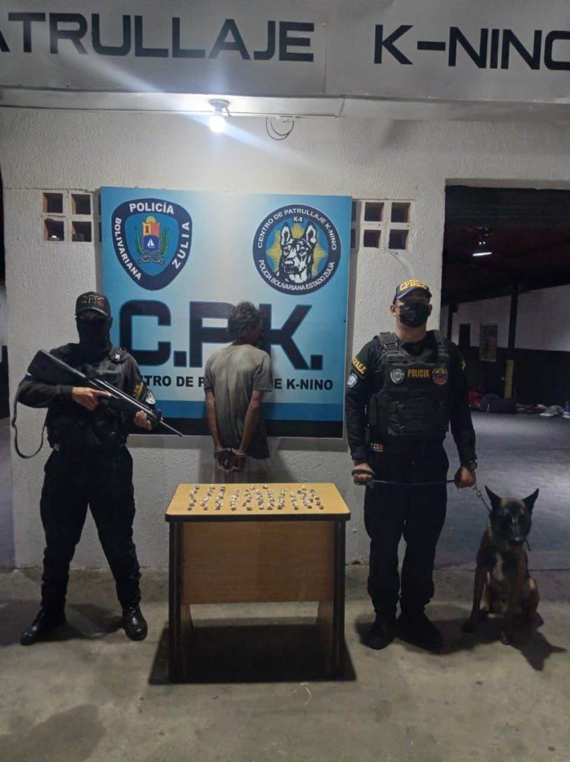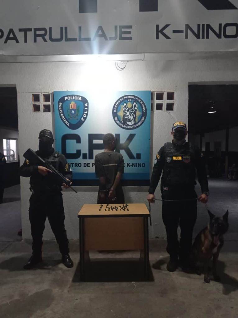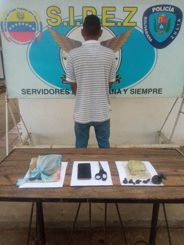 Agentes del Servicio de Investigación Penal Sipez, en el barrio Libertador, parroquia Antonio Borjas Romero, arrestaron a Franklin Junior Guanipa Peña, quien al notar la presencia policía quien al realizarle una inspección corporal se le encontraron cinco envoltorios y una panela con presunta marihuana, arrojando un peso total de la presunta droga de 471 gramos.