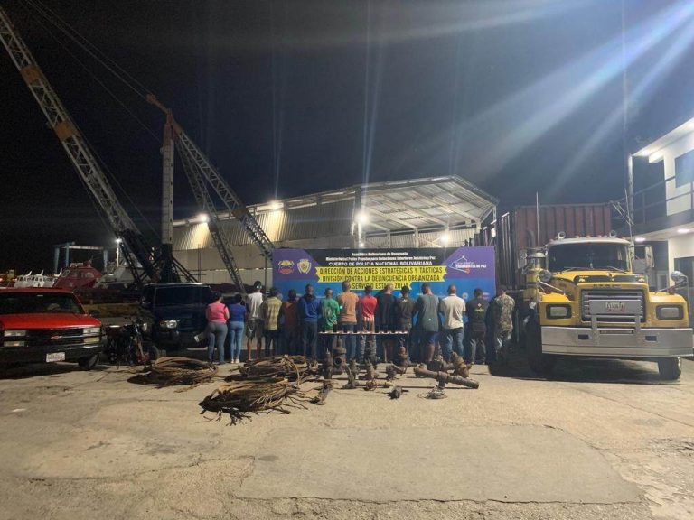 Evidencia incautada: 10 válvulas de control, 80mts de guaya de aterramiento, 3 retazos de tubería, cadenas de barco y 1 container contentivo de diferentes materiales ferrosos (chatarra naval), 8 teléfonos celulares, un radiotransmisor, 3 automóviles y una motocicleta.