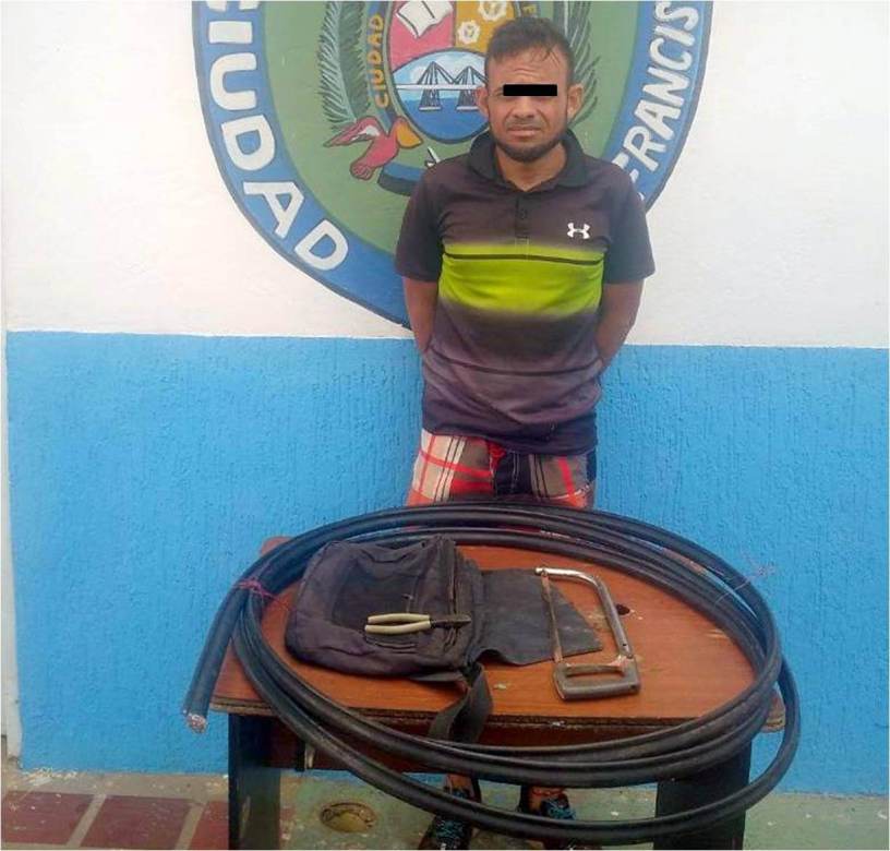 Oficiales de la Policía del Municipio San Francisco, detuvieron este jueves, en la urbanización El Soler, un sujeto que cargaba en un bolso seis metros de cable de línea telefónica, quien al ser verificado por SIIPOL, estaba solicitado por hurto.