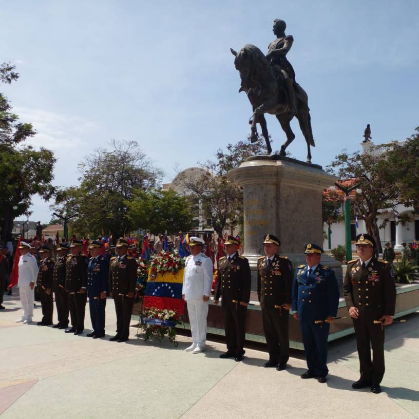 La ceremonia para la conmemoración de tan insigne fecha se llevó a cabo con un sol radiante, contó con la participación de autoridades civiles y militares de la región. Rindiendo honores al Padre de la Patria, Simón Bolívar.