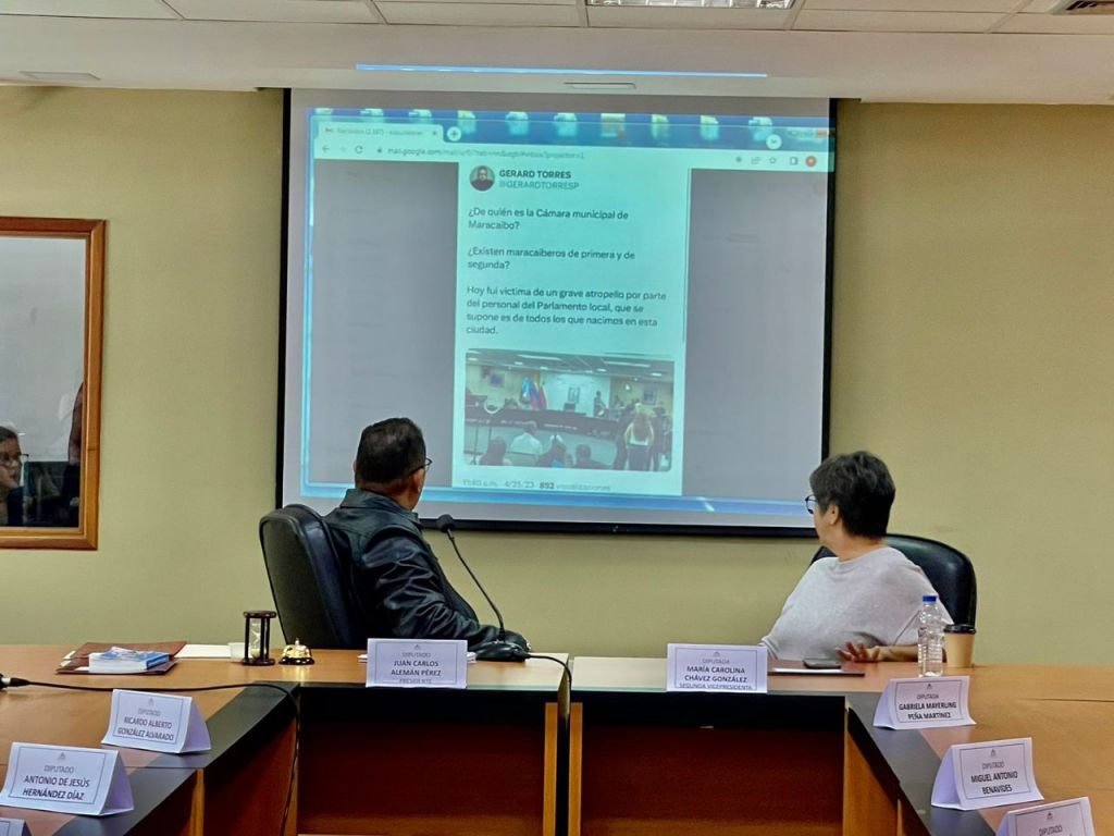 Al respecto, García durante su exposición detalló que nuevamente un periodista fue agredido en la Cámara Municipal de Maracaibo que dirige Primero Justicia, a quien se le impidió además ejercer su labor bajo el argumento de que “iba a ensuciar la alfombra”. El personal del espacio edilicio lo obligó a desalojar en medio de una fuerte discusión.