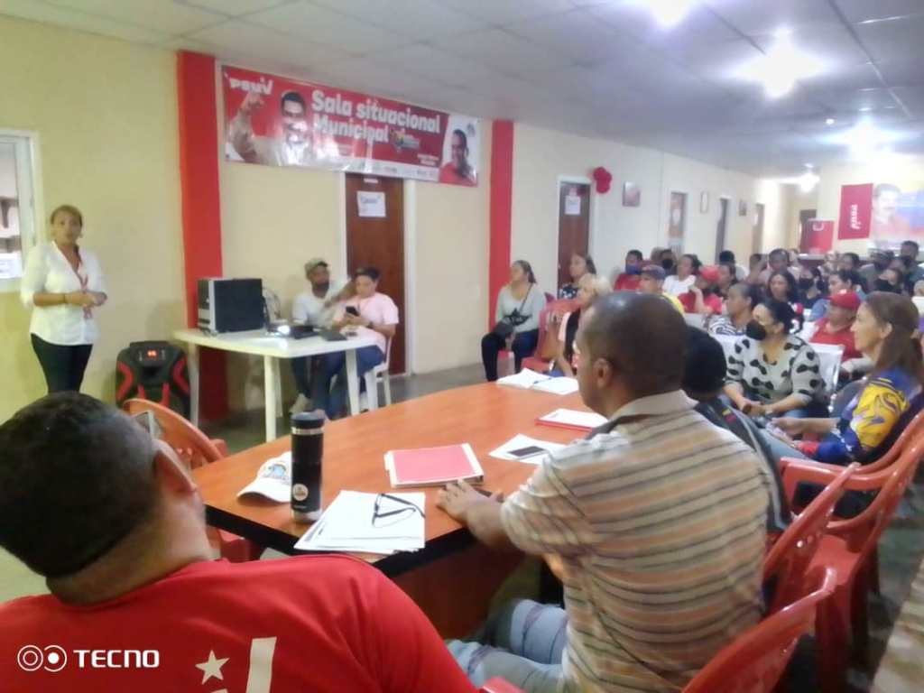 Yanira Medina, Coordinadora de Economía Productiva de la Estructura Municipal del PSUV Miranda Zulia, informó:»Enmarcado en el primer encuentro municipal con los voceros y voceras de Economía Productiva, Comunas y las 70 UBCH que conforman el municipio Miranda, con el propósito de dar información sobre los lineamientos del Estado Mayor de Alimentación y el Comisionado Estadal, ingeniero Rafael Bracho con respecto al plan de trabajo que se debe implementar en cada sector».