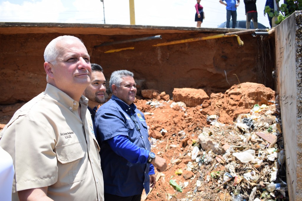 “Vamos a rellenar este espacio y luego levantar un muro de contención con concreto”, informó el alcalde Gustavo Fernández, acompañado del director general del ayuntamiento, Orlek Ferrer; el gerente de Operaciones, Romario Fuenmayor y José Luis Ramírez, gerente de infraestructura.