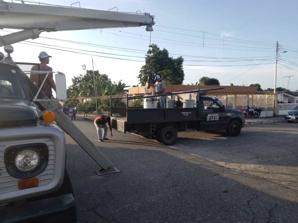 Con el propósito de beneficiar a más de 60 familias del sector La Conquista en la parroquia Rómulo Gallegos de la población de Caja Seca y en un trabajo conjunto entre la alcaldía del municipio Sucre y Corpoelec se sustituyó un transformador de 75 Kva, por dos de 37.5 Kva.