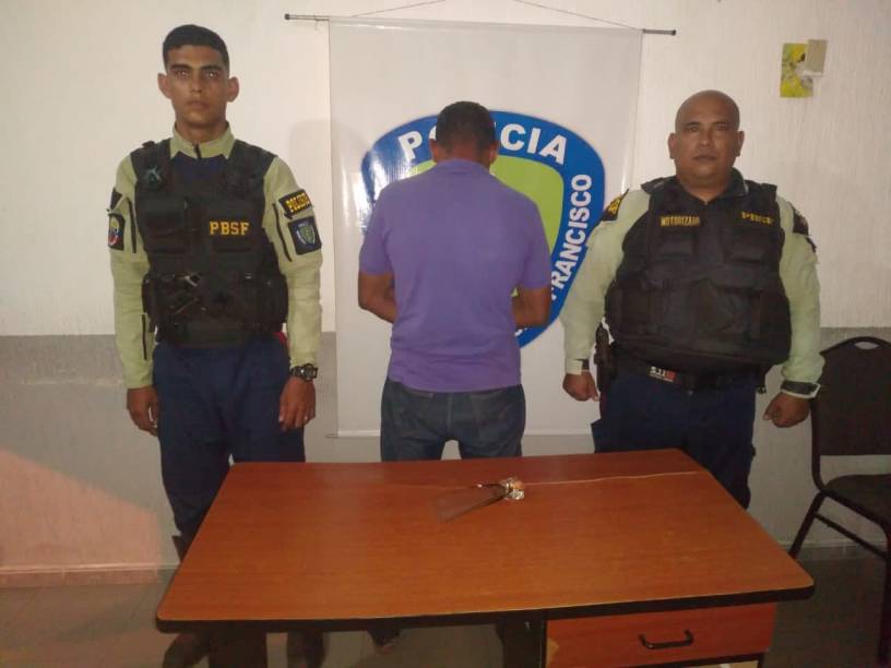 Oficiales de la Policía del Municipio San Francisco, respondiendo al reporte de una riña familiar en el barrio la Muchachera, de la parroquia Domitila Flores, Cuadrante de Paz número 14, detiene un sujeto por Violencia de Género.