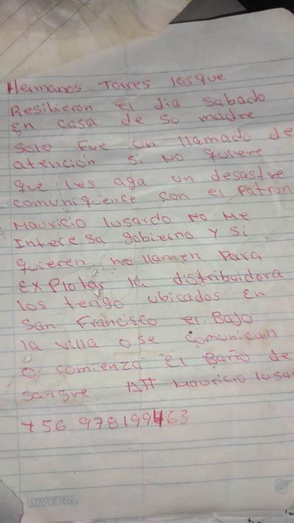 Se le practicó la inspección corporal, incautándole un teléfono y varios panfletos, con diferentes tipos amenazas en contra de las personas del sector, perteneciente al Grupo Estructurado de Delincuencia Organizada Mauricio Luzardo.