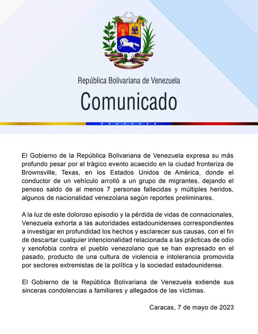 “Es muy doloroso lo ocurrido en Texas con la muerte de al menos 7 migrantes venezolanos. Sabemos la vulnerabilidad en la que se encuentra nuestra gente que huyen expulsados por la dictadura de Maduro.