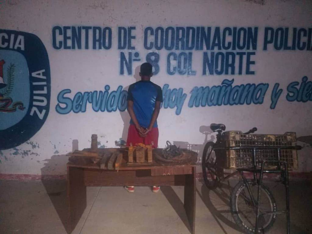 Por su parte en el sector La Rosa de Cabimas, fue detenido Yohendry Daniel González Romeo de 19 años, quien llevaba en una bicicleta siete barras, cuatro trozos de hierro, un tubo y una cadena, al ser abordado sobre el material no supo decir el origen ni su destino. Los hombres quedaron en cada delegación policial puestos a disposición del Ministerio Público.