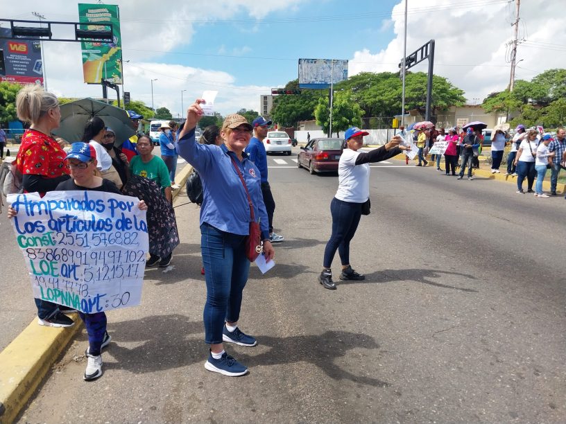 El bullicio reinaba en el lugar, donde los manifestantes con pancartas en mano, paraguas para protegerse del sol, pitos y cornetas de aire, llamaban la atención de los conductores que transitaban por la avenida Guajira.
