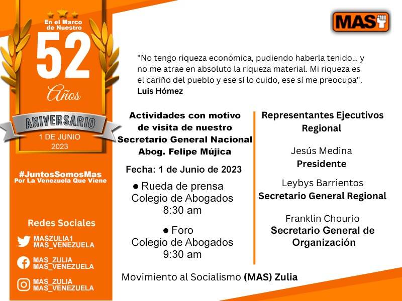 Regionales El MAS cumple 52 años al servicio de los venezolanos. Fecha: 31 mayo, 2023Autor/a: Crítica24 0 Comentarios Comparte esto: Compartir en X (Se abre en una ventana nueva) X Comparte en Facebook (Se abre en una ventana nueva) Facebook Compartir en LinkedIn (Se abre en una ventana nueva) LinkedIn Compartir en Telegram (Se abre en una ventana nueva) Telegram Compartir en WhatsApp (Se abre en una ventana nueva) WhatsApp Me gusta Cargando...