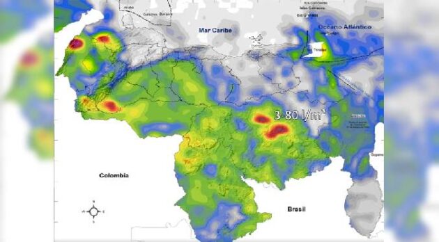 Señala el reporte que Venezuela las condiciones durante la jornada será de núcleos convectivos de rápida evolución originando lluvias fuertes, descargas eléctricas y posibles ráfagas de viento, en áreas del Zulia, los Andes, Apure, Barinas, Guárico, Anzoátegui, Bolívar, Amazonas y nuestro Esequibo.