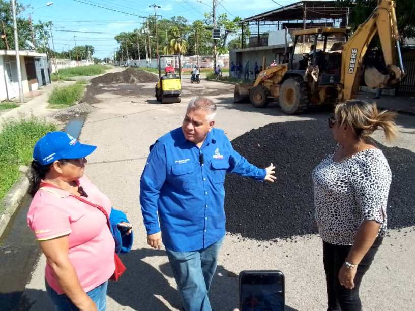 Siguiendo el plan de bacheo en la ciudad, la concejal Hiulis Rivero inspeccionó, junto con el alcalde José Mosquera Adarme, el plan de bacheo de la calle Isaías Medina Angarita.