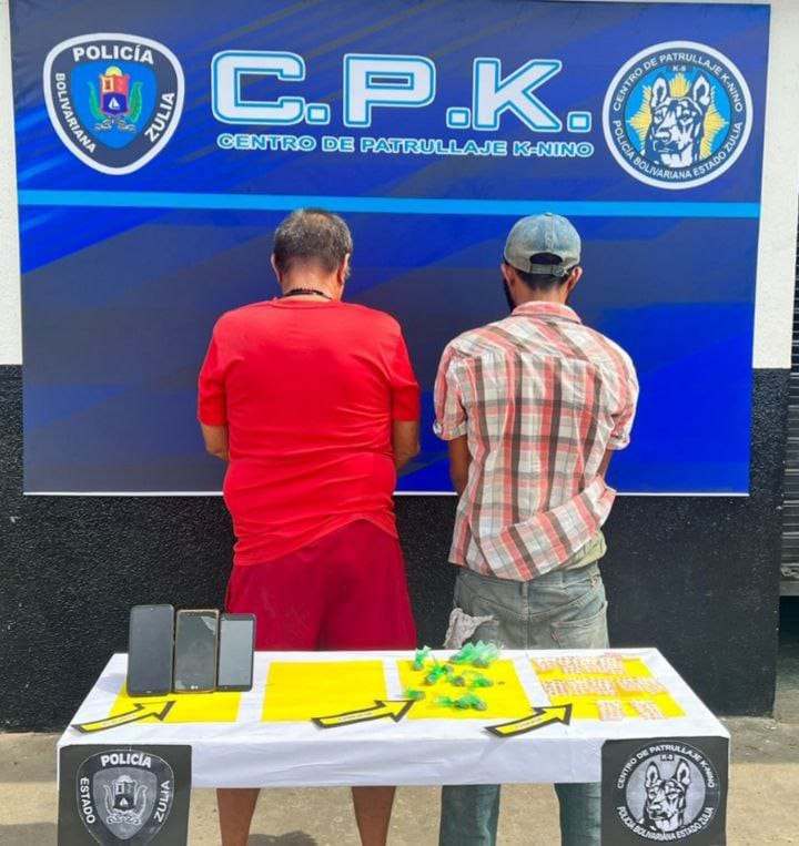 Por último en el barrio Sabana Sur de San Francisco, con la actuación del Centro de Patrullale K-nino (CPK) con diez envoltorios con restos vegetales con 13 gramos de peso, fueron arrestados Lendys Alberto Valero Bracho (65) y Alexander Nahum Salazar Sánchez (30); todos los casos pasaron a disposición del Ministerio Público.
