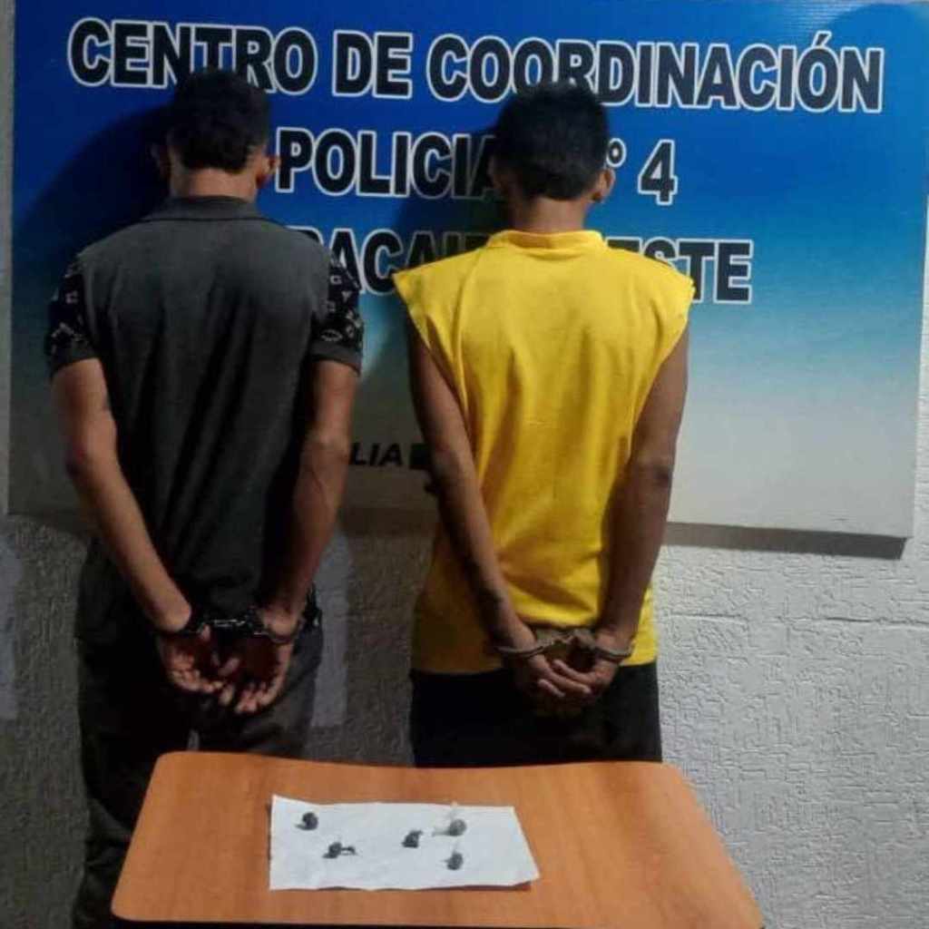 Mientras que en el barrio Estrella del Lago de Maracaibo, en una esquina fueron aprehendidos por oficiales del Centro de Coordinación Policial Maracaibo Oeste Endry Enrique Vílchez González (27) y Yeral Abel González (25), con cinco envoltorios con restos de hierba presuntamente marihuana.