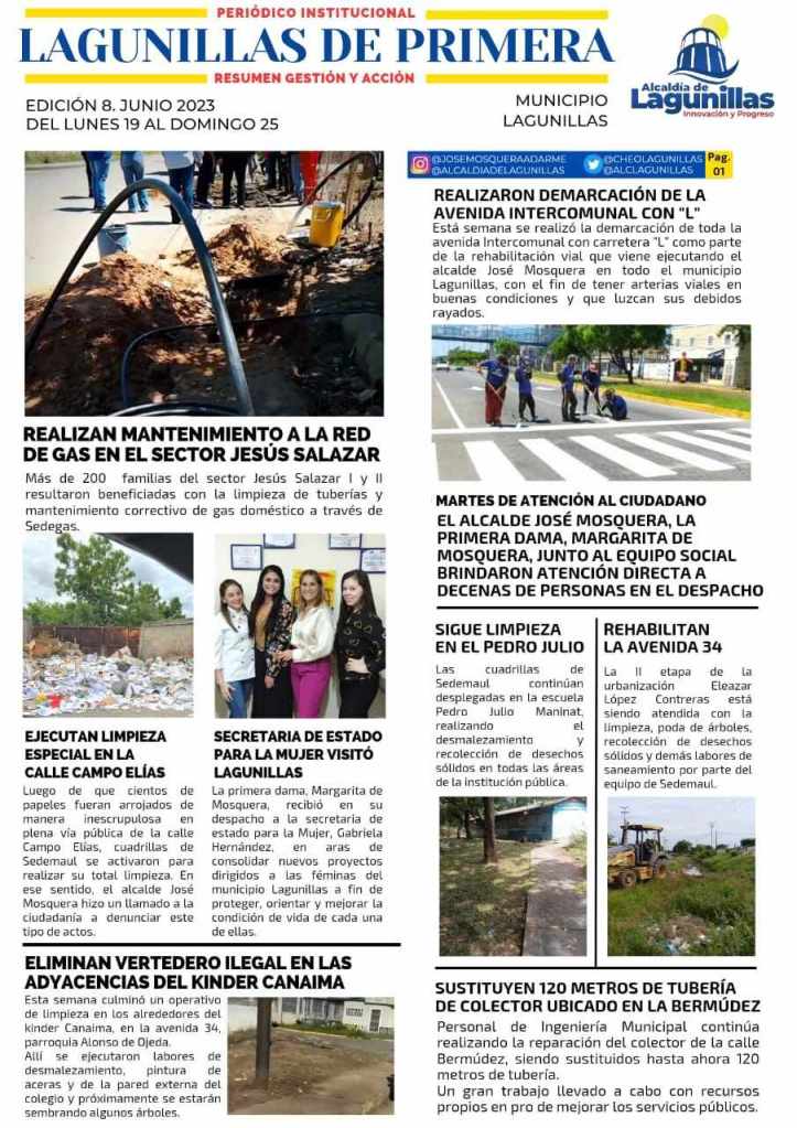 Municipal Lagunillas de Primera. Semanario digital con información destacada del alcalde José Mosquera Edición #8 Fecha: 27 junio, 2023Autor/a: Crítica24 0 Comentarios View this post on Instagram A post shared by Critica24 (@critica24oficial) Comparte esto: Compartir en X (Se abre en una ventana nueva) X Comparte en Facebook (Se abre en una ventana nueva) Facebook Compartir en LinkedIn (Se abre en una ventana nueva) LinkedIn Compartir en Telegram (Se abre en una ventana nueva) Telegram Compartir en WhatsApp (Se abre en una ventana nueva) WhatsApp Me gusta Cargando...