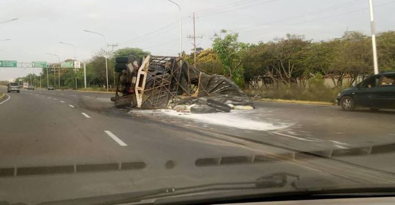 Un camión volcó este jueves en la mañana en la prolongación de la Circunvalación 2, a la altura del distribuidor Ricardo Aguirre, en sentido Maicaíto hacia el sur de la ciudad.