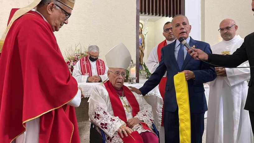 Rosales dijo que en nombre del pueblo zuliano, en esta fecha tan importante para la iglesia, como es la celebración de San Pedro y San Pablo, «rendimos homenaje y reconocimiento, por sus 38 años de vida episcopal, a monseñor Roberto Enrique Lückert León, 38 años en los caminos de la fe, en los caminos de la Virgen, en los caminos de Dios, en los caminos, en los caminos de la esperanza.