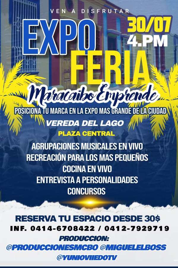 Publicidad Ven a disfrutar de Expo Feria Maracaibo en la vereda del Lago Fecha: 3 julio, 2023Autor/a: Crítica24 0 Comentarios Comparte esto: Compartir en X (Se abre en una ventana nueva) X Comparte en Facebook (Se abre en una ventana nueva) Facebook Compartir en LinkedIn (Se abre en una ventana nueva) LinkedIn Compartir en Telegram (Se abre en una ventana nueva) Telegram Compartir en WhatsApp (Se abre en una ventana nueva) WhatsApp Me gusta Cargando...