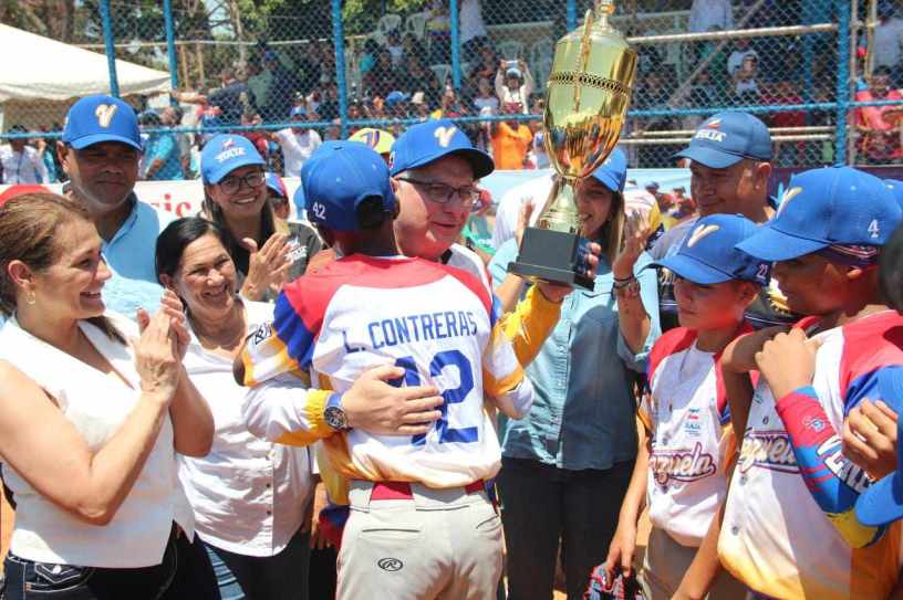 Al ritmo de la gaita zuliana cortesía del Ensamble Gaitero, el alcalde Gustavo Fernández, acompañado por parte de su equipo de trabajo entregó el trofeo «Alcaldía de San Francisco», al equipo de Venezuela «A», desbordando la alegría en el coso sureño.