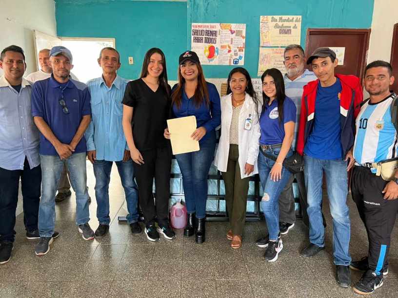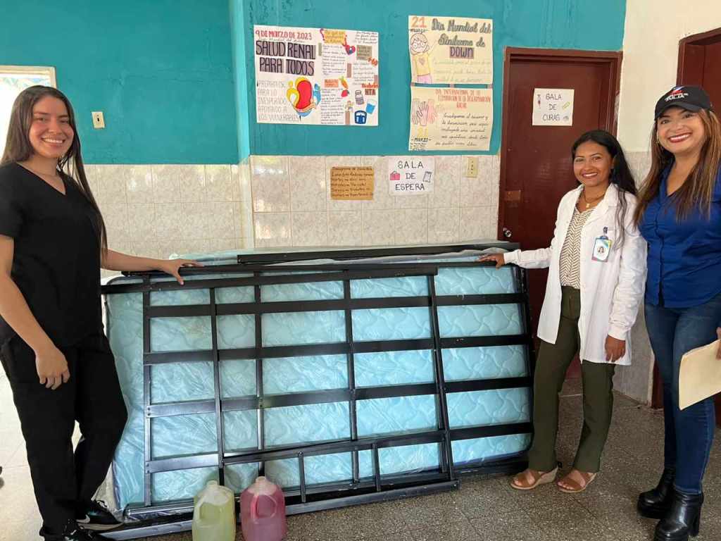 La coordinadora del gobierno regional en Santa Rita, Lizzi Echeto, acompañada por la intendente municipal, Neylimer Parra, y el asesor jurídico regional, Elvis Rodríguez, visitó el centro de salud para hacer la entrega de una dotación de literas y colchones nuevos.