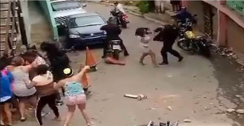 Al momento de proceder con su aprehensión, un grupo de personas, quienes se presume eran habitantes del sector, abordaron a los policías y comenzaron a agredirlos con objetos contundentes para facilitar que la detenida se escapara.