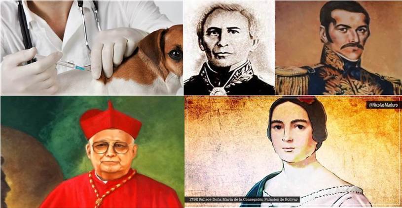Un día como hoy, 06 de julio, se celebra el Día Mundial contra las Zoonosis. Un día como hoy, en 1782, se conmemora el Natalicio de Luis Brion. Un día como hoy, en 1792, fallece María de la Concepción Palacios y Blanco, madre del Libertador Simón Bolívar Palacios.