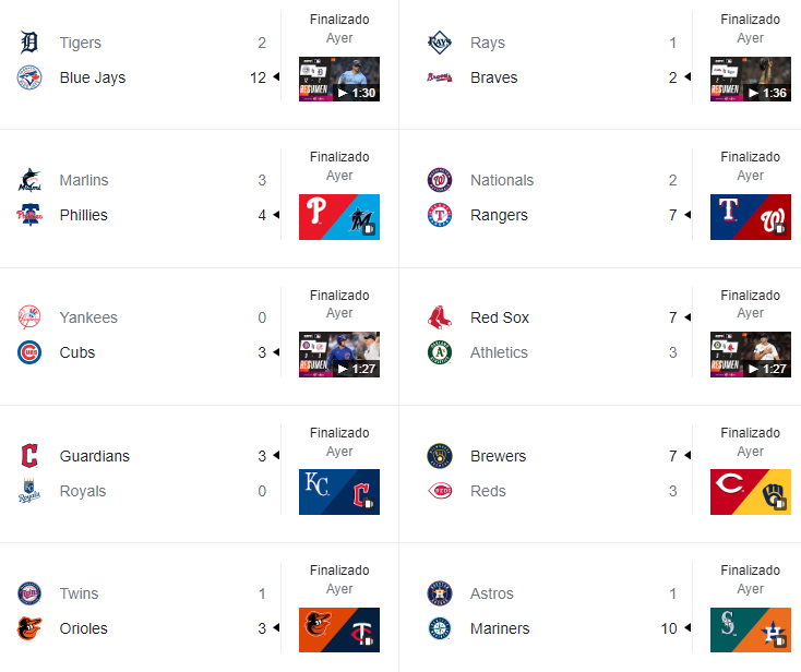 Cuando ya estamos en la mitad de temporada de Grandes Ligas y conocemos cuáles son los equipos que no tienen chance de avanzar a las series de postemporada y quienes se convertirían en vendedores y en compradores, seguimos presentando día a día los resultados del béisbol de Grandes Ligas para que sigas de cerca la actuación de tu equipo favorito y el lugar que ocupa en la tabla de clasificación.