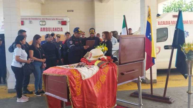 Hoy miércoles 12 de Julio el sol brilló más que nunca despidiendo a un gran héroe de azul, sus hijos los funcionarios bomberiles de Miranda brindaron una emotiva despedida en donde paso la mitad de su vida, desde que emigró de la ciudad Capital. Al sonido retumbante de las sirenas fue recibido el Cuerpo de quien consolidó un proyecto que hoy se llama Cuerpo de Bomberos del municipio Miranda. Un acto de Homenaje Post Morten realzó la gallardía de un hombre entregado a su prójimo. Seguidamente se hizo guardia de honor por media hora, para posteriormente trasladar a su última morada al inolvidable Padre de los Bomberos de Miranda.