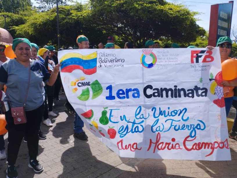 El Ministerio del Poder Popular para la Educación a través de la Red Intercicuital de la Zona Educativa del municipio Miranda del estado Zulia, efectuó la primera caminata que lleva por nombre «En la Unión está la Fuerza» teniendo como punto de partida la Plaza Ana María Campos y de llegada la Plaza Francisco de Miranda, contando con la participación de la Corporación Nacional de Alimentación Escolar (CNAE), Centro de Desarrollo de la Calidad Educativa Zulia, Frente Fernanda Bolaños, Docentes, Estudiantes, Personal Obrero, Administrativo, Cocineros y Cocineras de la Patria, Padres, Madres, Dirección de Alimentación de la Alcaldía Bolivariana del municipio Miranda, Instituto Municipal de Educación Ramón García Oliveros(Imcergo), Instituto Municipal Bolivariano para la Preservación del Acerco Histórico y Cultural (Imbpahc).