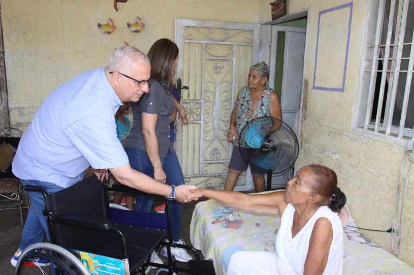 Entre las personas beneficiadas se encuentran Olga Montero de 67 años, residente del barrio Alicia de Caldera, quien agradeció el noble gesto del alcalde de entregarle una silla de ruedas en su hogar.