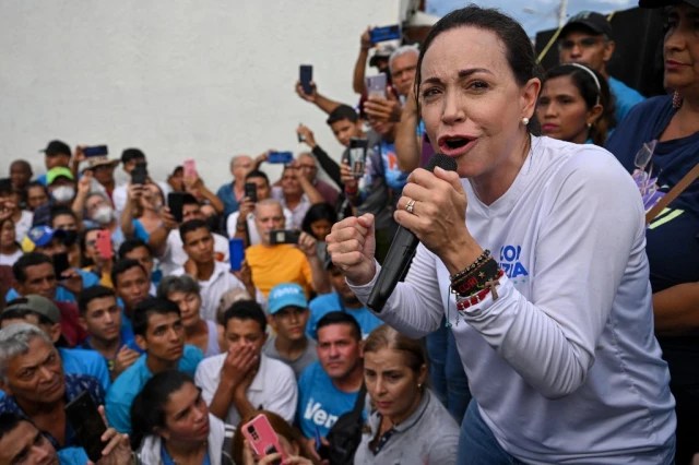 La precandidata presidencial María Corina Machado llegó este jueves 20 de julio a Valle de La Pascua, estado Guárico, pese a las nuevas amenazas del régimen chavista.