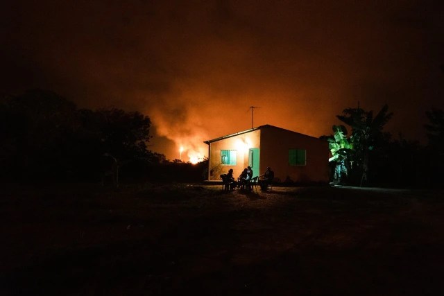 Las llamaradas de gas explosivas de los pozos de petróleo cercanos arrojan un residuo aceitoso e inflamable sobre las plantas. Las hojas se queman, se secan y se marchitan.