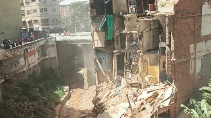 El debilitamiento de las bases de un edificio generó el colapso de la estructura, tras las lluvias de la onda tropical 22