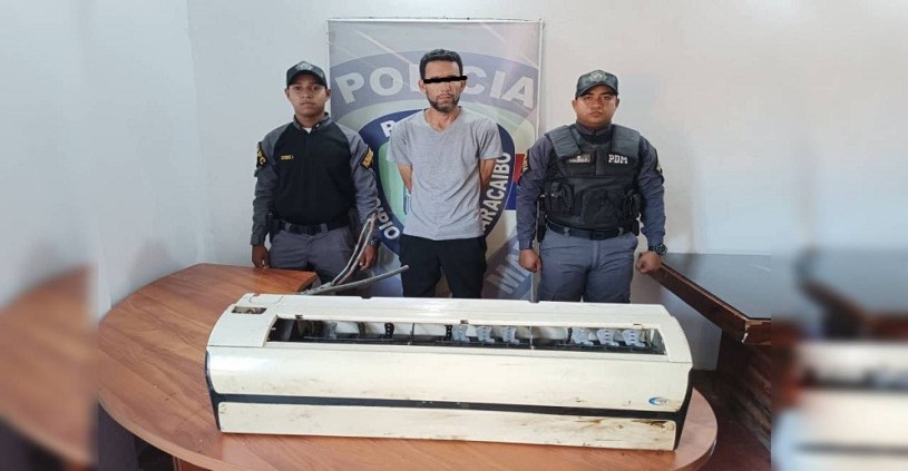 Funcionarios de Polimaracaibo de la Unidad de Patrullaje Canino (U.P.C) detuvieron a un ciudadano de nombre Angel Briñes, alias «El Puli» por presuntamente ingresar a una vivienda ubicada en la Urbanización San Jacinto, sector 18 transversal 18 vereda, y sustraer una consola de aire acondicionado, esto de acuerdo con una denuncia formulada vía teléfonica al cuerpo policial.