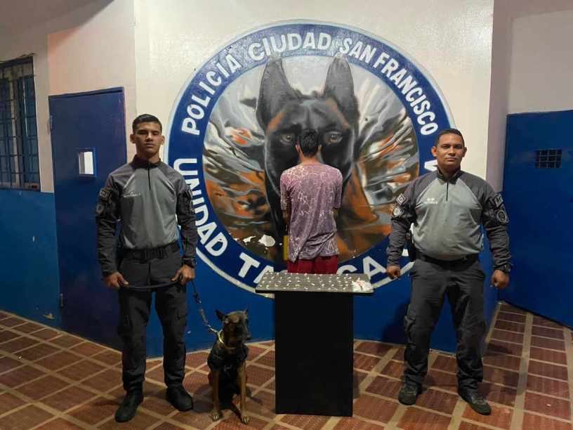 Cumpliendo instrucciones del Director Comisario General Jorge Luis Sará, los oficiales del Instituto Autónomo Policía del Municipio San Francisco realizando un Patrullaje Preventivo por el Barrio Luis Aparicio, calle 151 con avenida 48F, divisan a un ciudadano quién para el momento vestía con un shorts de color rojo con negro y un suéter camuflajeado de color morado con blanco, contextura delgada, tez morena, estatura promedio, quien al ver la Comisión Policíal, asumió una conducta nerviosa intentado evadir la Comisión Policial, por lo que proceden a restringirlo y realizarle la Inspección Corporal.
