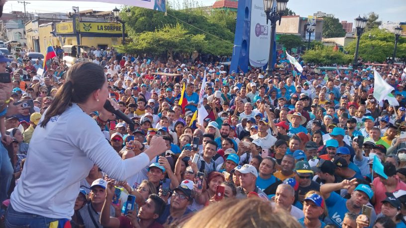 Más temprano, en un compartir con los periodistas en la sede del partido Vente Venezuela en Maracaibo, Machado también respondió a la interrogante de oro y la respuesta que muchos venezolanos esperan. ¿Si ganara las primarias y va al CNE a inscribirse como candidata, pero el sistema se lo impide, qué respuesta le daría a quienes votaron por ella?