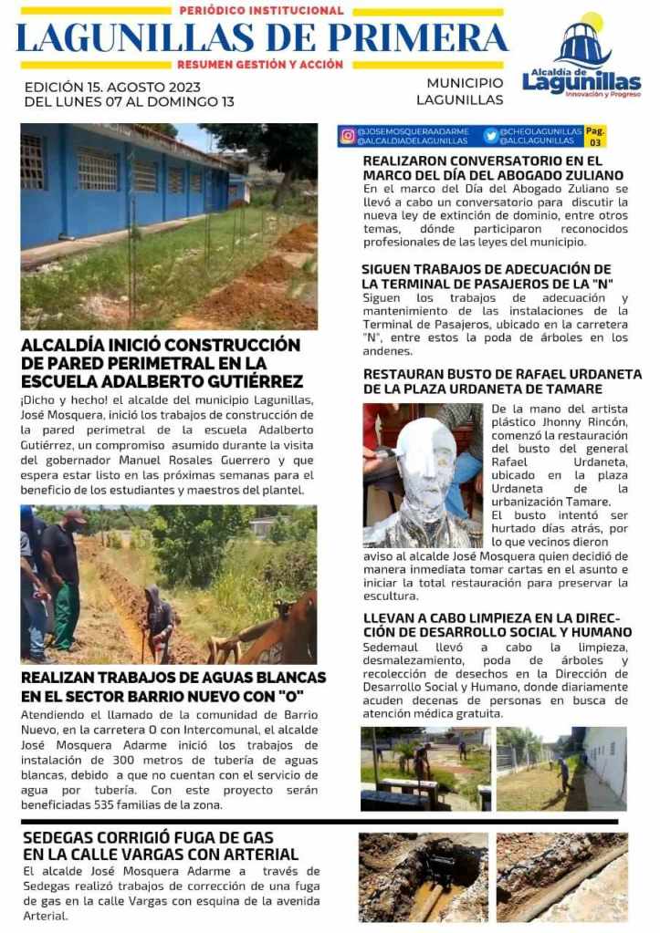 Regionales Lagunillas de Primera. Edición 15 de agosto 2023 Fecha: 15 agosto, 2023Autor/a: Crítica24 0 Comentarios Comparte esto: Compartir en X (Se abre en una ventana nueva) X Comparte en Facebook (Se abre en una ventana nueva) Facebook Compartir en LinkedIn (Se abre en una ventana nueva) LinkedIn Compartir en Telegram (Se abre en una ventana nueva) Telegram Compartir en WhatsApp (Se abre en una ventana nueva) WhatsApp Me gusta Cargando...