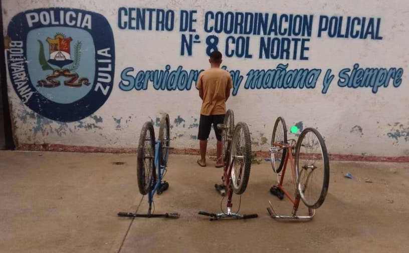 Uniformados del Centro de Coordinación Policial Col-Norte, fueron alertados sobre la presencia de dos elementos que se encontraban en la calle Paraíso del barrio Chino II, parroquia Rómulo Betancourt, municipio Cabimas, sometiendo a los transeúntes a quienes despojaban de sus pertenencias, en especial bicicletas y teléfonos celulares, así lo informó el CG Roberto Antonio Alfaro Molinarez director general del Cuerpo de Policía Bolivariana del estado Zulia (Cpbez).