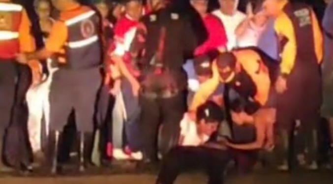 Una pareja de motorizados cayó al canal de agua principal en la avenida intercomunal Maracay-Turmero tras intensas lluvias en la zona desde horas de la tarde.