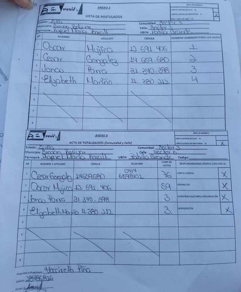 “Desde la semana pasada la Dra. Jenny Cedeño, autoridad única de alimentación en el estado Zulia, por el ministerio de alimentación informó, que los compañeros y compañeras electas en las pasadas elecciones y que están en las actas verificadas en la dirección regional del partido, son los que resultaron ganadores, y son quienes están en el Sistema Único de Gestión de Información del Ministerio de Alimentación (SUGIMA) a nivel nacional, y aún así ese señor hace caso omiso en el municipio, lo cual afecta a quienes salieron a participar en este proceso tan importante”. Señaló Zamira Villalobos, habitante del sector.