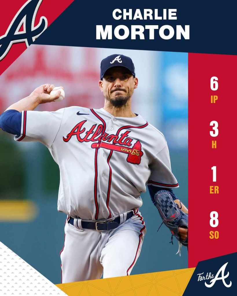 Bravos se apoyó en la gran labor del abridor Charlie Morton, quién lanzó por espacio de 6 entradas, con 3 hits concedidos, 1 carrera permitida, 2 boletos y 8 ponches y del efectivo relevo de Pierce Johnson, A.J Minter y de Raisel Iglesias como cerrojo.