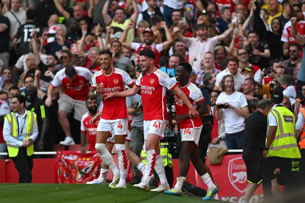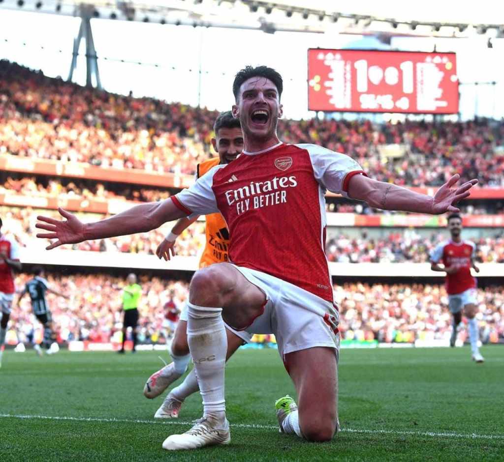 Cuando todo indicaba que iban a igualar, Declan Rice le dió la ventaja al United al 99+6′ luego de rematar un rebote del arquero André Onana y Gabriel Jesús, en un peligroso contragolpe sentenció el fatídico destino de los visitantes al romper las redes al 90+11′ luego de recibir una asistencia de Fabio Vieira.