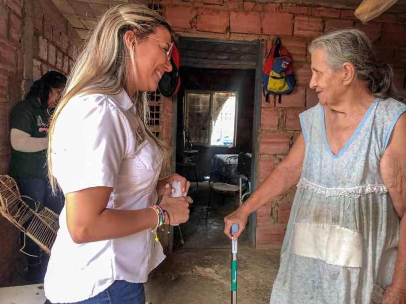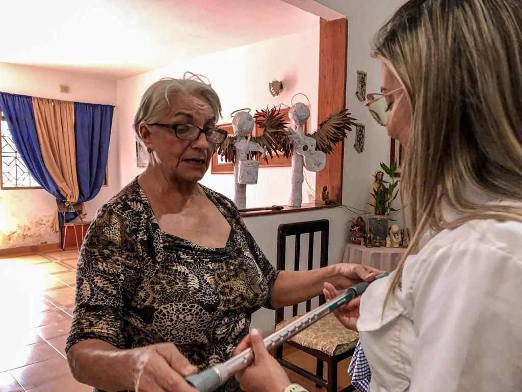 Arminda Rodríguez, un ama de casa de 69 años y habitante de la parroquia Santa Lucía, resultó beneficiada con un bastón y expresó que, hace un año, fue diagnosticada con artrosis en sus rodillas por lo que necesitaba un bastón para poder movilizarse.