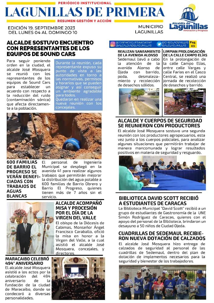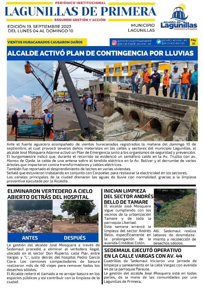 Semanario digital con información destacada de la gestión del alcalde José Mosquera. Edición #19: del lunes 04 de septiembre al domingo 10 de septiembre