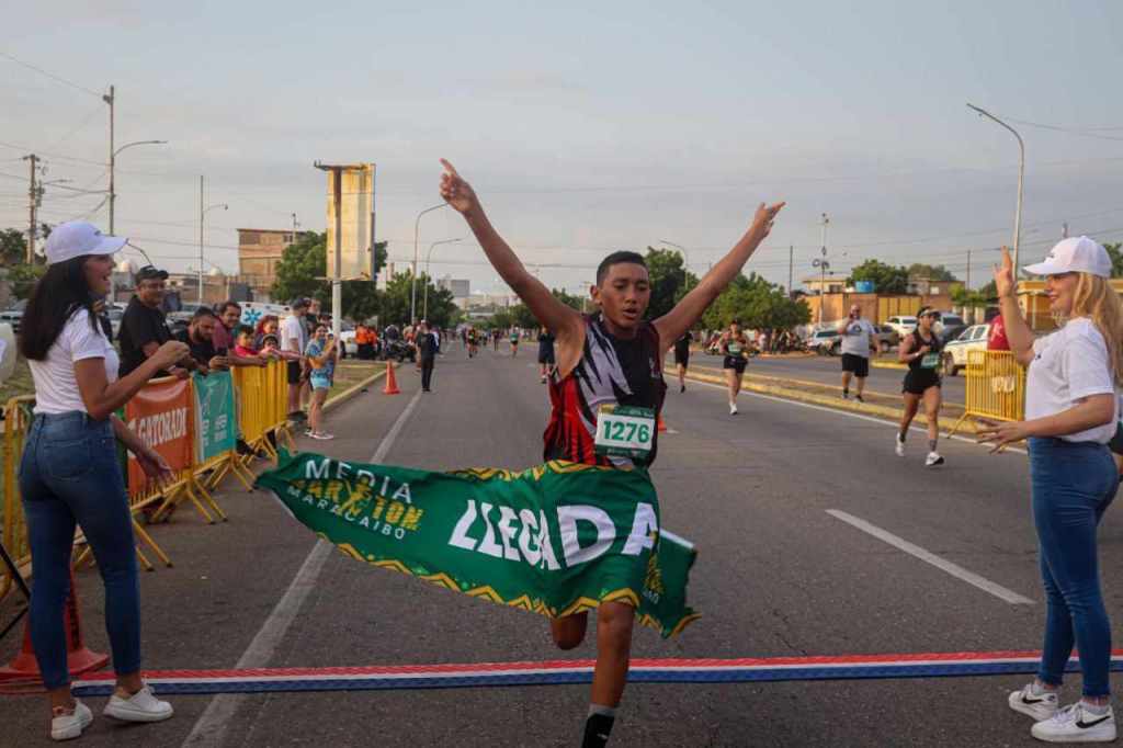 José David García, un adolescente de 14 años, fue el primero en llegar a la meta de los 10K que este año se estrenaron dentro de la Media Maratón Ciudad de Maracaibo, realizada este domingo 17 de septiembre, en el marco de la celebración de los 494 años de la fundación de la ciudad, y que esta edición 2023 rinde homenaje al atleta Armando Serrano.