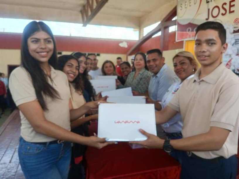 Desde la Escuela Técnica José Paz González del sector Pueblo Nuevo en la parroquia Altagracia en el municipio Miranda, se realizó el acto donde la Lcda Penélope González, Jefa de la Zona Educativa Zulia, informó, que es un orgullo ver que estos jóvenes se forman en espacios educativos que han venido recuperando gracias a la gestión del Presidente Nicolás Maduro y la Ministra del Poder Popular para la Educación Yelitze Santaella para ofrecer una educación excelente en el estado Zulia: «Esto no es más que un momento emotivo de mucho orgullo porque vemos como una camada de muchachos y muchachas se nos van de los liceos a ser carreras en toda la región Zuliana que van a fortalecer el motor productivo de nuestro país en unos cuantos años y entregarle esta herramienta tecnológica que le va facilitar los estudios universitarios; para nosotros es muy satisfactorio y un compromiso con la educación de nuestro país».