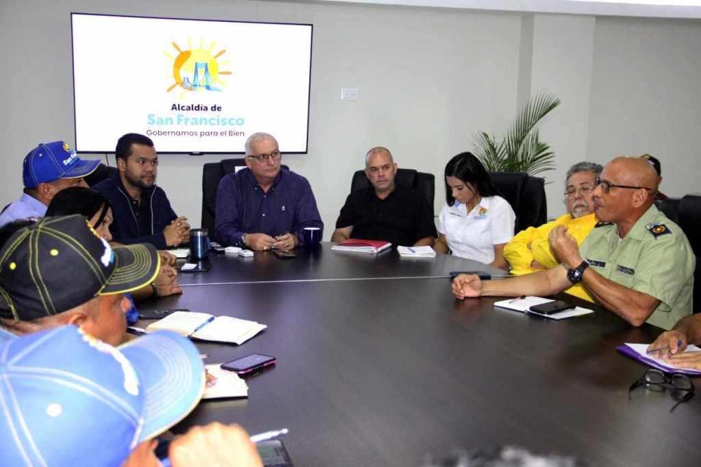 El alcalde Gustavo Fernández sostuvo un importante encuentro en materia de seguridad con el director de Polisur, comisario general Jorge Luis Sará, el director de Seguridad Ciudadana, Sub PSF. Renny Chourio, parte del tren gerencial de la alcaldía de San Francisco y los secretarios generales de cada parroquia, para combatir de manera mancomunada el flagelo delictivo en el municipio.