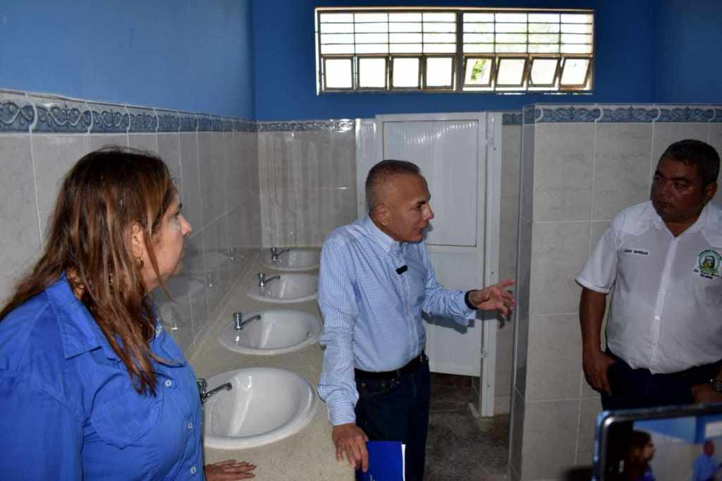 Rosales, junto con su equipo, visitó la Unidad Educativa Estadal «Eloy Párraga Villamarín, donde inspeccionó los trabajos de modernización de este espacio educativo, ubicado en el Sector Las Casitas, Corredor Vial «Silfredo Montero», de la Parroquia El Rosario, con una matrícula de 452 estudiantes, de 1er grado a 5to año de bachillerato. «Estamos trabajando para la recuperación completa de esta escuela. Las salas sanitarias que estaban en muy malas condiciones, ya están en funcionamiento y se trabaja en todas las aulas», dijo el Gobernador.